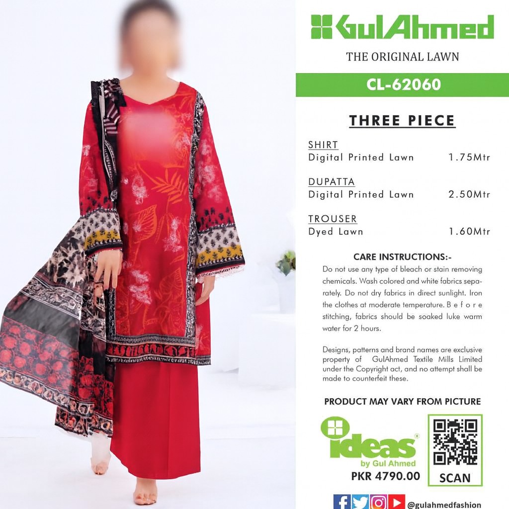 Gul Ahmed Lawn – Unstitched 3 Piece Printed Suit (CL-62060)